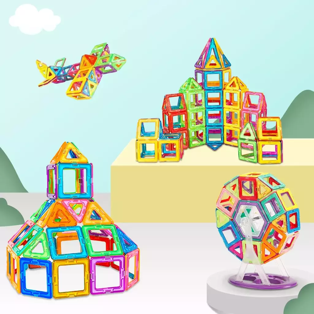 Perfeito para horas de diversão em família, os blocos magnéticos 3D são a escolha ideal para despertar o pequeno inventor que existe em cada criança.